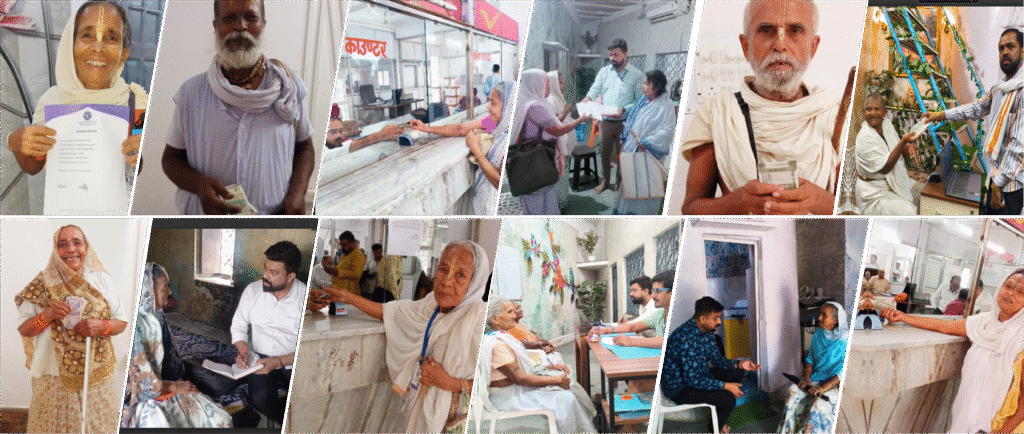 For years, countless elderly—especially widowed mothers and other elderly destitute in Vrindavan—have lived in neglect, not only emotionally and socially, but financially. While the government provides pension schemes meant to ensure a basic sense of security, the reality is that most elderly have been left out—lost in a system too complex to navigate alone.